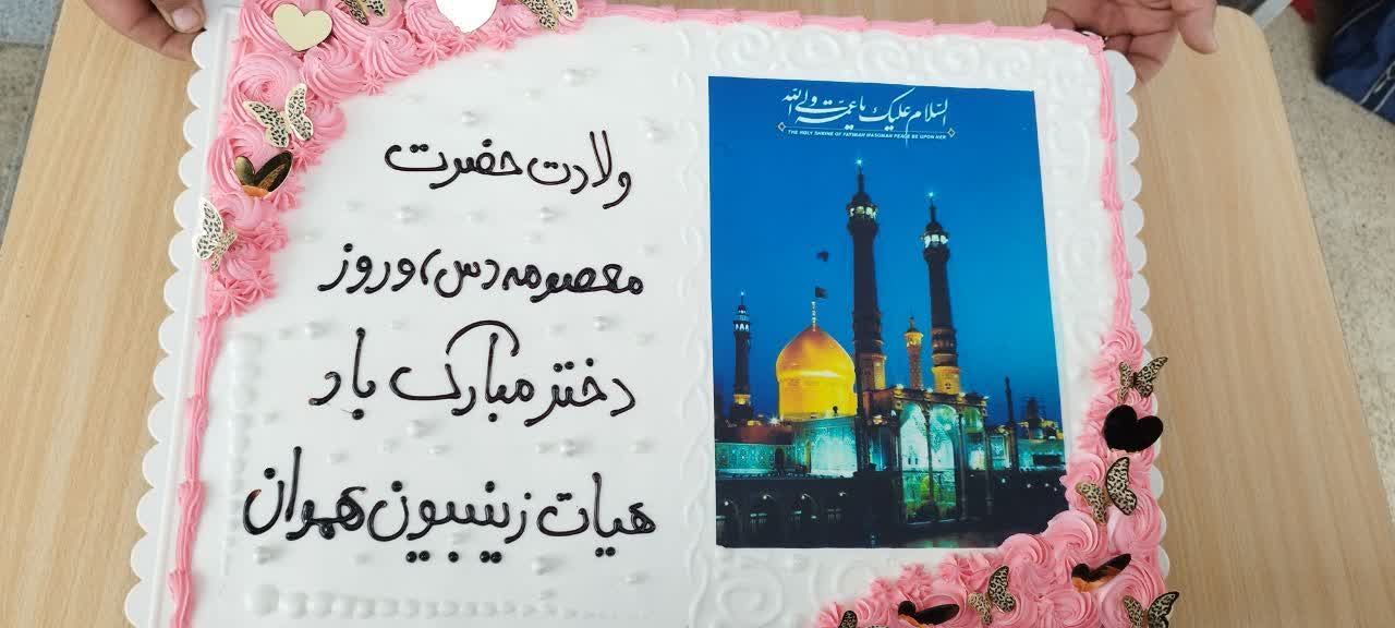 در ادامه دانش‌آموزان با بریدن کیک میلاد حضرت معصومه (س) حلاوت این جشن را به کام خود و حضار مراسم دو چندان کردند.‌