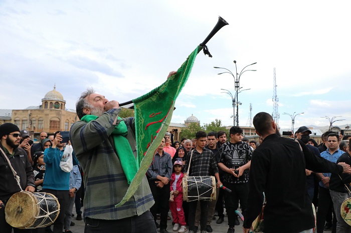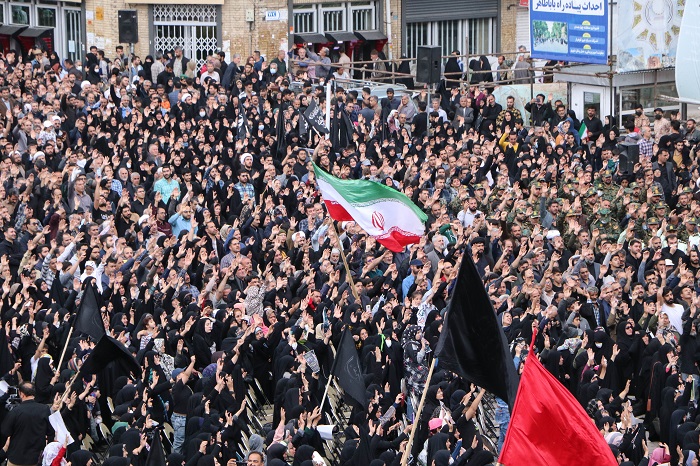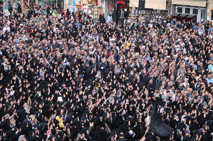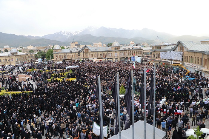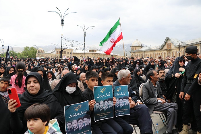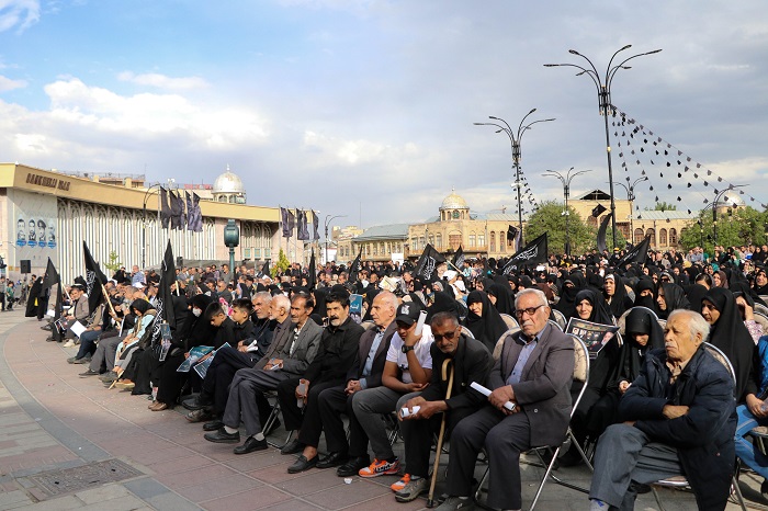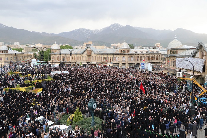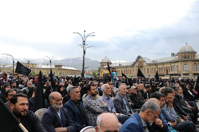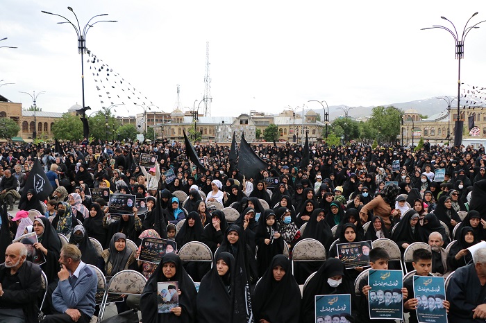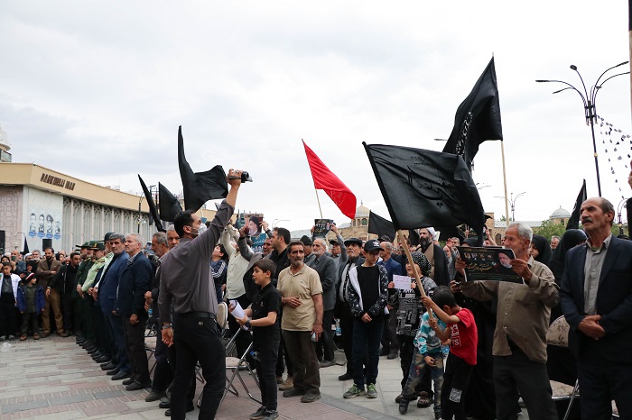 عصر امروز ۳۱ اردیبهشت ۱۴۰۳ مردم همدان در میدان امام خمینی (ره) در سوگ شهادت خادم الرضا و هیئت همراهشان عزاداری کردند.