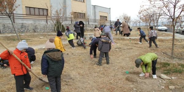 کاشت نهال توسط دانش‌آموزان همدانی در محوطه کتابخانه‌های عمومی استان